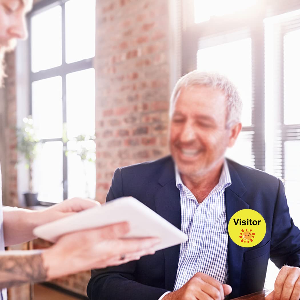 - 500 Bright yellow visitor pass stickers,1.5 inch in diameter. perfect for visually identifying visitors and guests in business and casual settings.