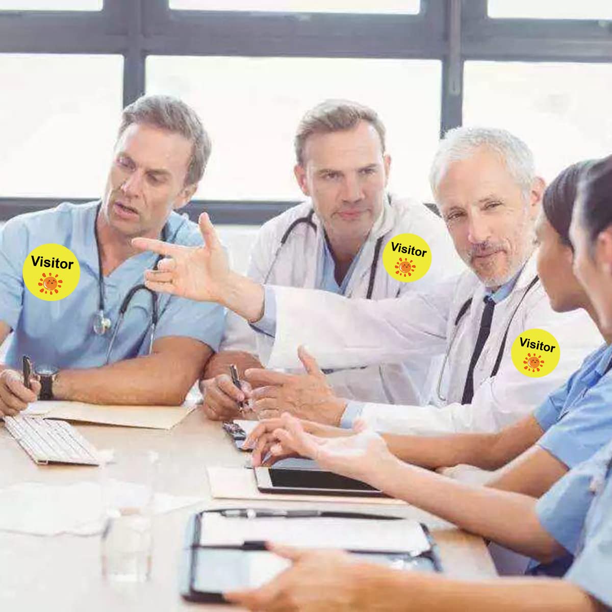- Visitor Identification Stickers help easily identify visitors from schools, kindergartens, day care centers, hospitals, clinics, sanatoriums, or businesses.