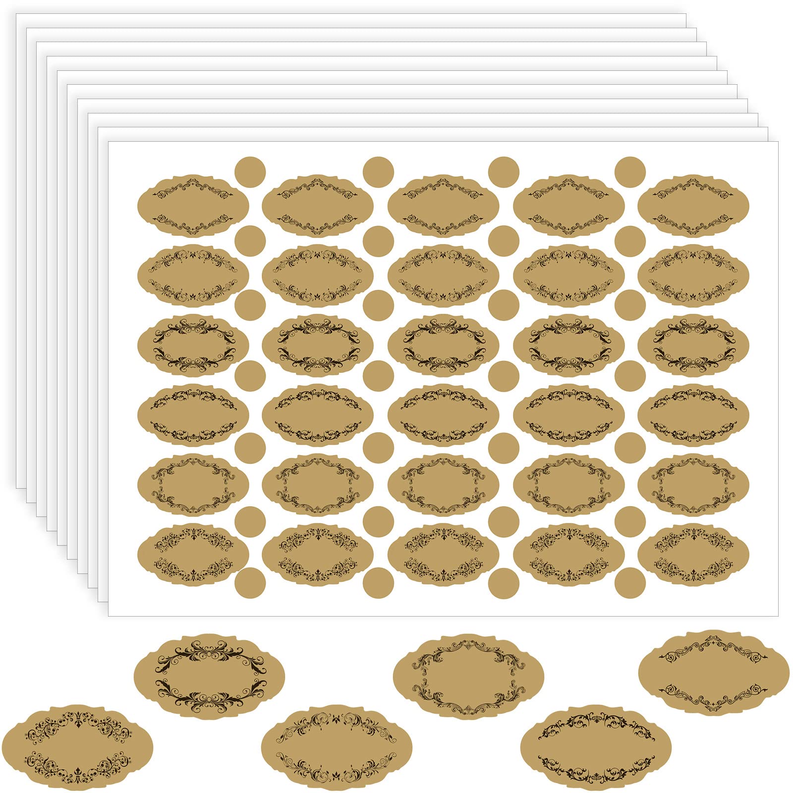 - Total Quantity: you will get 10 sheets of kraft paper colored labels for bottles, each sheet includes 30 pieces oval retro labels and 28 pieces round dot labels; The quantity is sufficient and there are 2 different styles of labels to meet your daily needs
