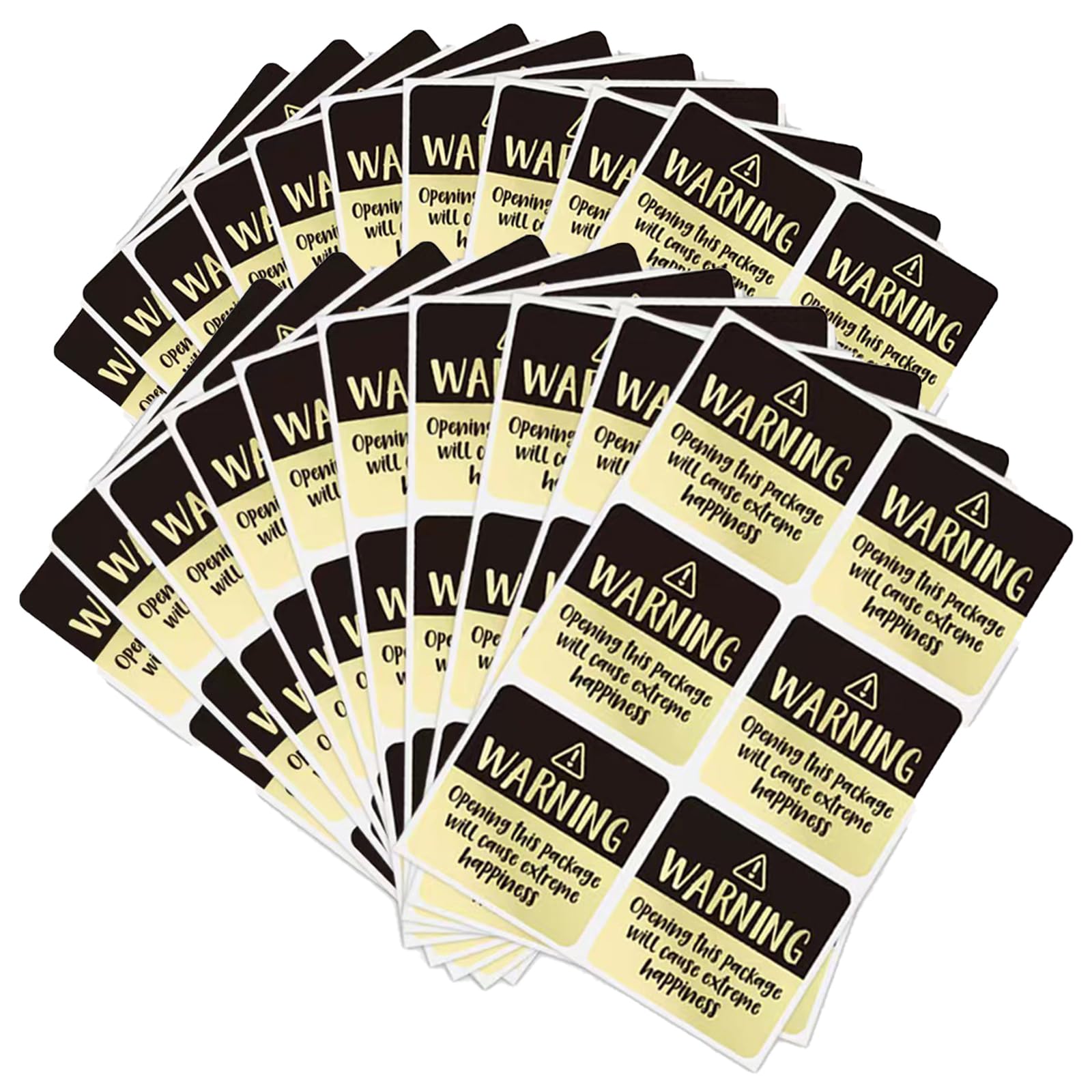 - Cute Design These ultimate happiness stickers were carefully designed by the creative team,with a glossy coating on the exterior. The colors are distinguished between gold and dazzling colors,and the words "Warning" and "Opening this package will bring ultimate happiness" are clearly printed on them. The cute text reminds customers or recipients of the upcoming ultimate happiness,bringing them more surprises and joy.