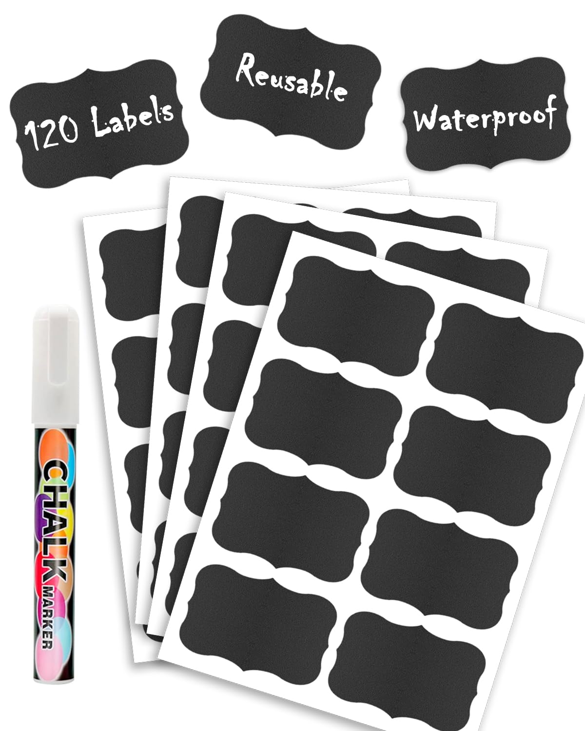 120pcs Chalkboard Labels for Jars, Removable Stickers with Chalk Marker Pen