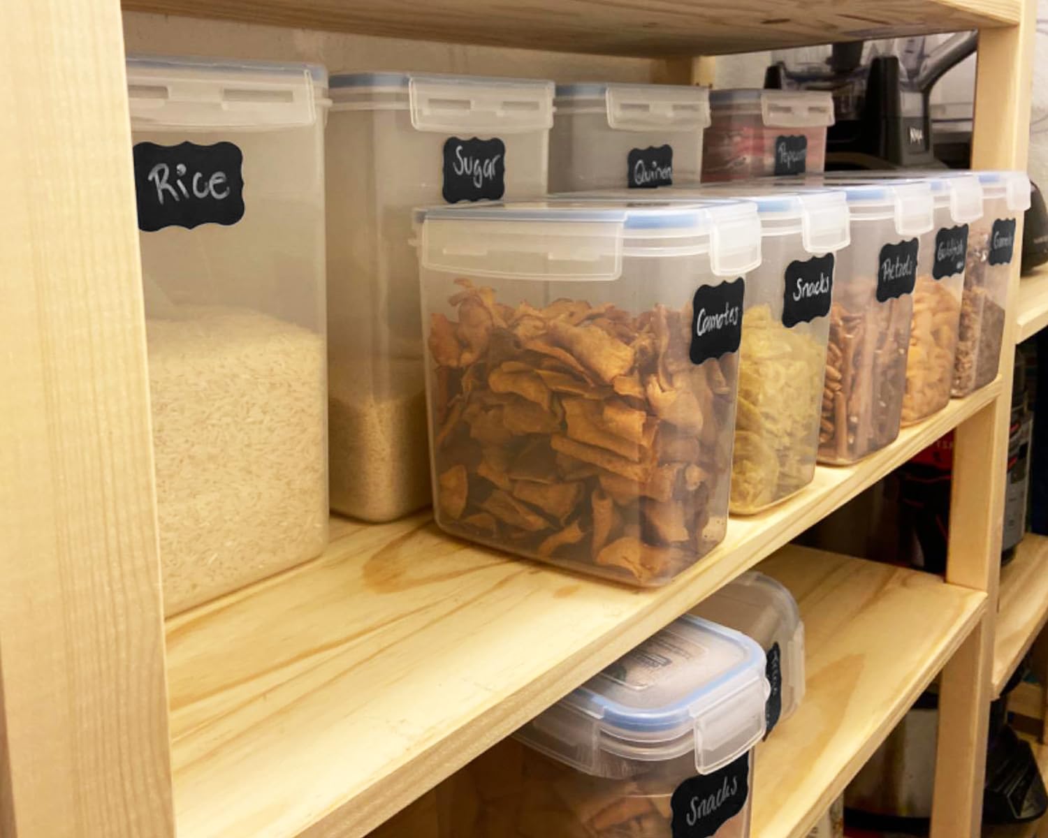 - These pantry labels for containers work great on jars, food containers, storage bin, bottles, office folders and more. Make your kitchen, storage room, bedroom & office cleaner and more organized