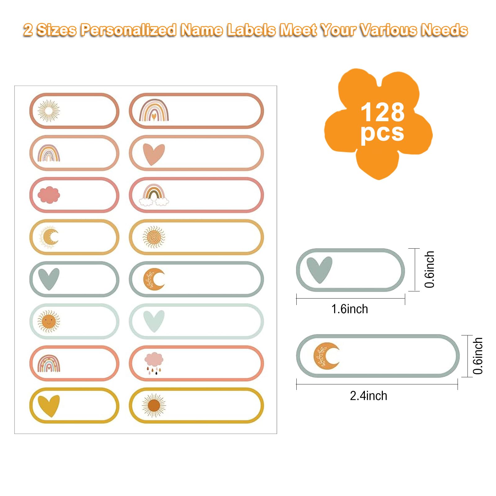 128 Pcs Baby Bottle Labels for Daycare, Waterproof Name Labels for Daycare, School Name Label Stickers for Kids, Self - Laminating Self Adhesive, Name Tags Stickers