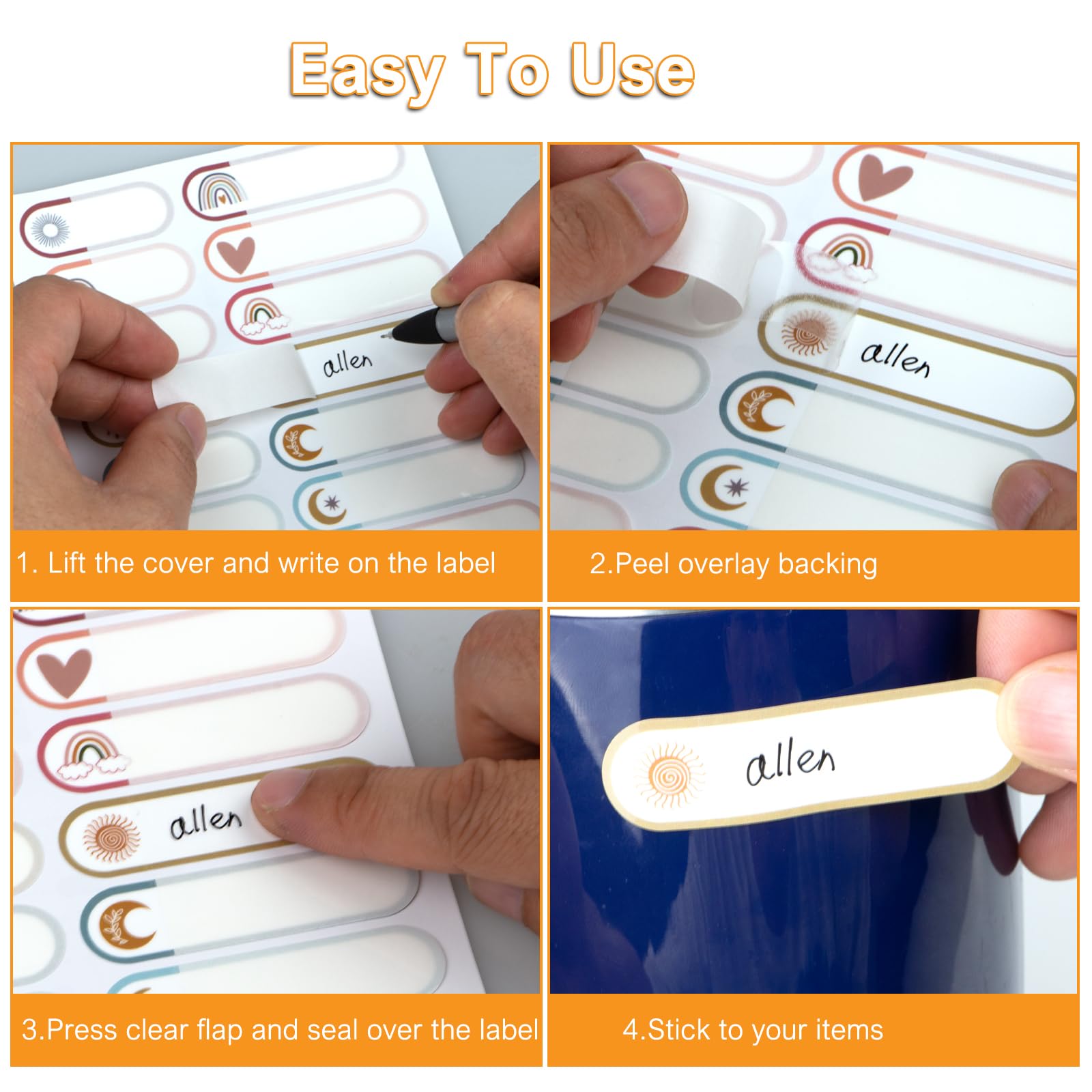 - Easy to Write and Use: Our baby bottle labels are made of smooth waterproof label paper, you can write smoothly. Firstly lift the cover and write something on the daycare label, then peel off the backing and press clear flap create smooth waterproof sea to create a waterproof seal, finally apply the label to a clean and dry item.