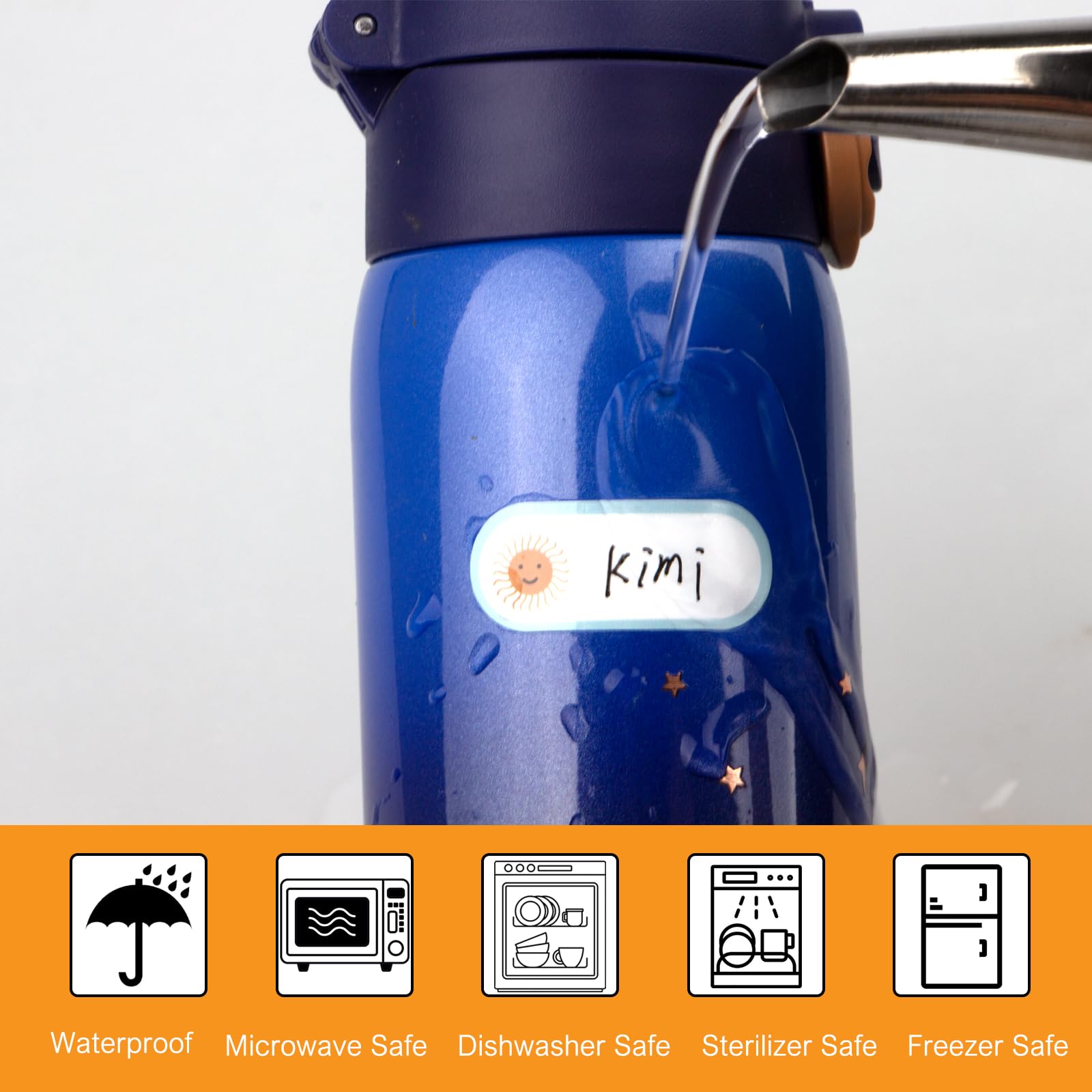 - Waterproof Name Labels: The self-laminating bottle labels equipped with a clear self - laminated layer that provides protection from water, oil, steam, alcohol, smudging and and abrasion, and all waterproof, dishwasher-safe, microwave-safe, freezer-safe. It can be use for long time as the premium quality.