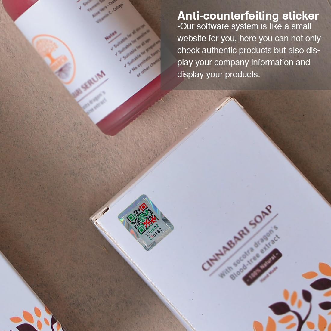 We not only supply customers labels, we can also provide the following Four services: 1. Anti-counterfeit query. Each label is unique, consumers can scan the code for authenticity query. 2. Product display. We provide a platform for customers where you can show your products. Consumers can view your products as long as they enter the platform by scanning the code. 3. Company display. Your consumers can get your company’s basic information and visit your official website through the link in the platform. 4.Scan Record. When the consumer scans the code, we can see the city address, IP location and scanning time of the code in the background . Description: 1. 1000 pieces per roll, including anti-counterfeiting query, product display, company display software service for free. 2. Our product is structural 3D QR code label, which gained national patent certification. 3. Our label itself has good recognition characteristics, and you can feel the concave on the surface of the label. 4.. Our label can be used on product packaging, with shinny appearance and good stickiness. 5. We are a factory that has been dedicated to anti-counterfeiting and traceability field for 18 years. If you have customized label needs, please feel free to contact us!