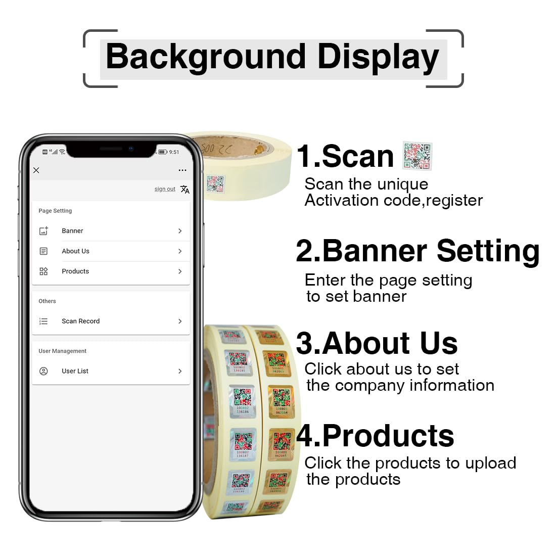 - Question: Can I modify my background page information? Answer: Yes, you can. When you want to modify your products information or your company information, you can go to your background by scanning activation code. That is why you should keep the activation code with you.