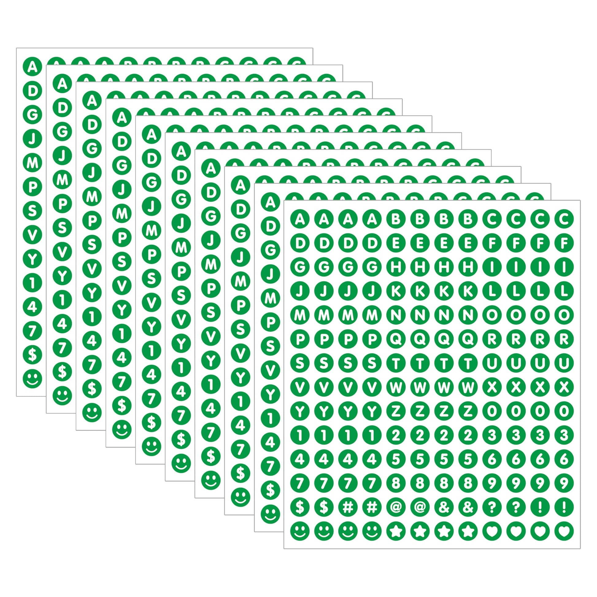 1680 Pieces 0.5 Inch Circle-Backed Letter Stickers, 10 Sheets Alphabet and Number Stickers with Cute Designs, Vinyl Stickers for DIY Cards, Item Labeling, Bullet Journaling, Scrapbooking - Green