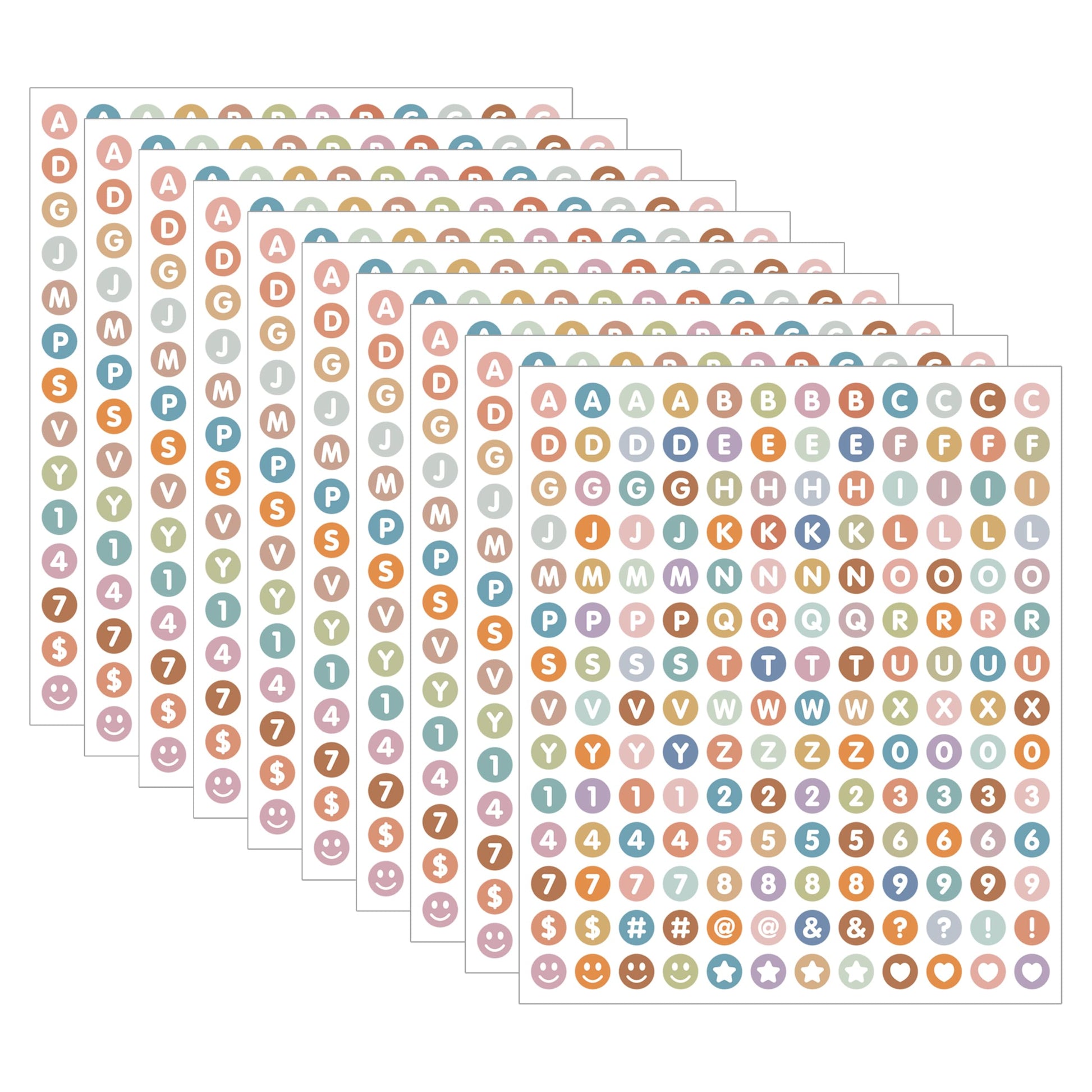 - Unleash Endless Creativity: Dive into a world of endless possibilities with our 1680-piece collection of 0.5-inch circle-backed alphabet and number stickers. Spread across 10 beautifully designed sheets, these charming stickers are perfect for adding a touch of elegance and fun to your DIY cards, item labeling, bullet journaling, and scrapbooking projects.