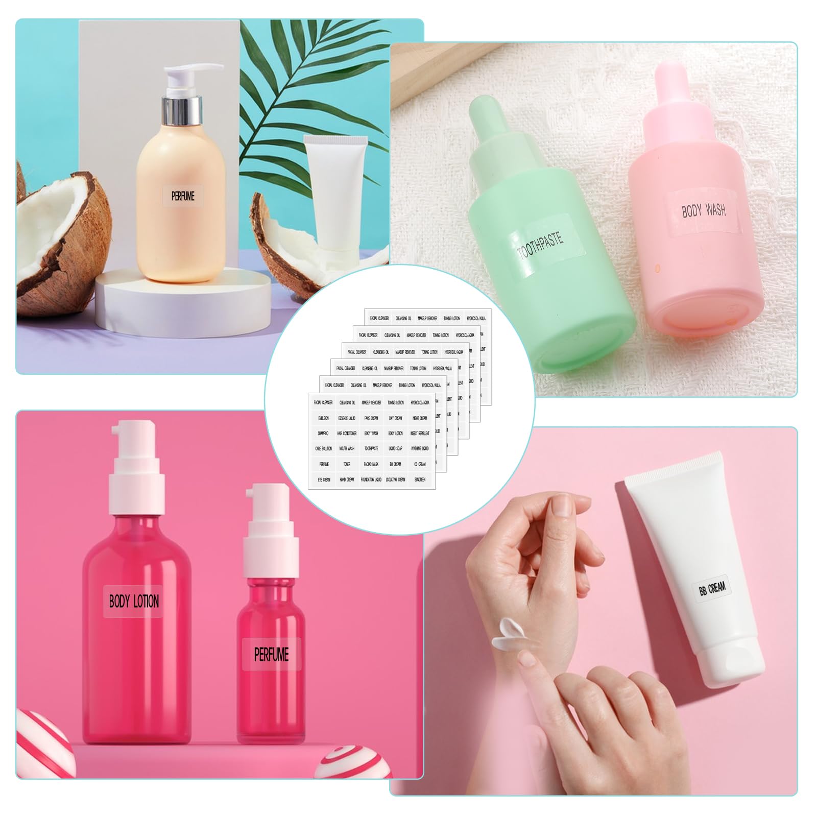- Wide ApplicationThese small cosmetic refillable bottle stickers can be used to classify bathroom supplies and dressing table skin care products, toiletry labels for travel size bottles suitable for various travel-sized bottles, skin care containers.