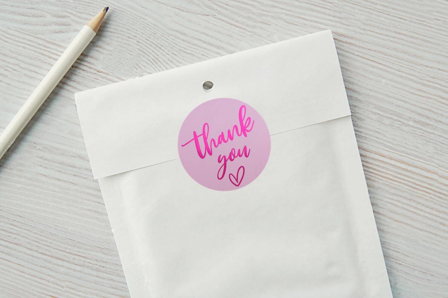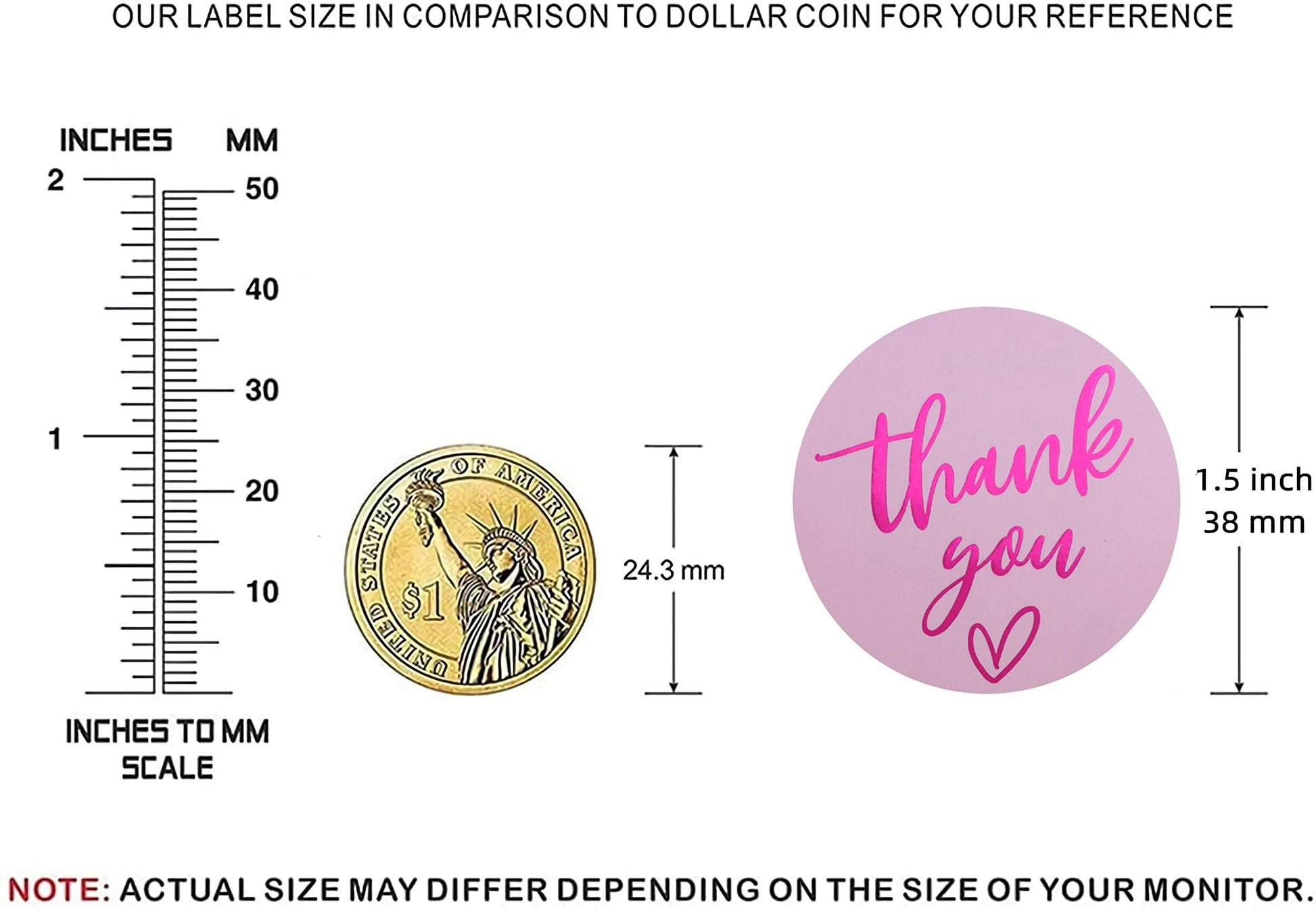 - ATTRACTIVE AND CLASSIC DESIGNS: Round shaped stickers Selected pink background, selected glitter gold foil color, selected handwritten Thank You font, coordinated color matching, a cute little heart. Designers put these classic elements together, produce the beautiful stickers. The whole picture looks like a big heart.