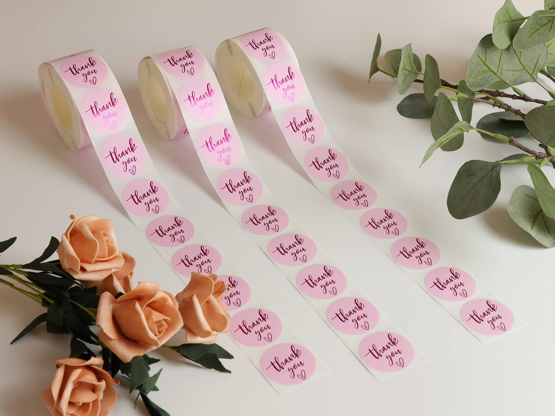 (3 Sizes-1.5") Pink Thank You Stickers, 1.5 inch Thank You Sticker Labels Roll, 500 Gold Foil Thank You Stickers Small Business, Adhensive Labels for Small Business Supplies (1.5 inch)